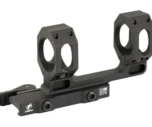 The AD-RECON-M mount is made for putting high power glass onto a flattop style AR-15. Designed to be used in conjunction with a Laser Sighting System to bring the Objective Housing high enough to clear the laser, or for shooters requiring a higher cheek weld for heads up shooting. This is the mid-height mount that they offer, the centerline height with 30mm rings is 1.64″ and 1.7″ with 34mm rings. The cantilever throws the scope out front with 2″ offset, allowing you to get the right eye relief. It is precision machined from 6061 T6 aluminum and finished in hard coat T3 Mil-Spec anodize. It features the Patented QD Auto Lock Lever system to accommodate both in spec and out of spec rail systems.
