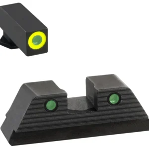 Modeled after AmeriGlo’s award-winning Federal contract sights, the Trooper sight set by AmeriGlo features a 3-dot design that offers an instant sight picture and proven accuracy you can trust to defend night and day. The Trooper Series comes with a Proglo front sight featuring green tritium with lumigreen outline and a black serrated square notch rear sight with green tritium and black outline. Fits Glock MOS slide.