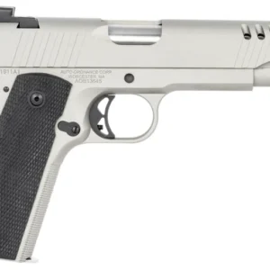 The American made Auto-Ordnance 1911 incorporates a variety of upgrades popular with modern shooters. It features an adjustable trigger, skeletonized hammer, full-length recoil guide rod, extended beavertail grip safety and extended magazine release. Frame, slide, and barrel are made from high quality stainless steel. The slide, sear and disconnector are precision manufactured, then heat treated properly for durability. The slide has decorative cuts and front cocking serrations. Both mainspring housing and front strap are machined checkered at 20 lines per inch. Includes magazine and Combat Day sights.