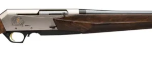 The Browning BAR line covers a wide range of tastes and has a long standing tradition for achieving bolt action like accuracy in an autoloading rifle. The gas system combined with a 7-lug rotary bolt give the shooting significant recoil reduction for comfort, while at the same time locking in bolt action-like accuracy. The action is surrounded by a recessed bolt face, which is encircled by the barrel and then surrounded by the receiver. Three complete rings of steel surround the cartridge. A seven-lug bolt and precise breech-to-chamber relationship give the BAR exceptional accuracy and the strength to handle magnum loads. The strong and very rigid action bar/inertia block link-up improves accuracy by reducing barrel vibration. The buffering system reduces wear and stress on the rifle’s mechanism. The BAR also features a crossbolt safety, single-stage trigger, hammer-forged steel barrel, detachable box magazine with a unique hinged floorplate and comes with a safety lock. This MK3 (Mark III) model features an engraved aluminum receiver, blued barrel, and oil Turkish walnut stock.