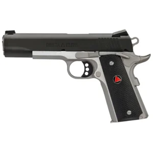 Colt’s Delta Elite 1911 features an upswept beavertail grip safety Novak white dot sights and composite grips with delta medallion.This Delta Elite model features a two tone finish. – Action: Single – Caliber: 10mm – Barrel Length: 5 – Capacity: 8+1 – Safety: Manual/Grip/Firing Pin – Grips: Black Polymer w/Delta Medallion – Sights: Genuine Novak White Dot Sights – Frame Finish: Two-Tone with Black Controls – Barrel Type: Stainless Steel