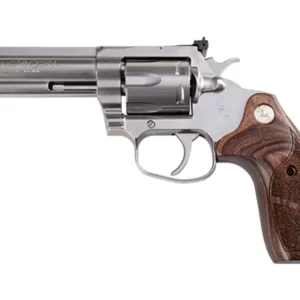Shooter’s Model are 100% New in the Box products that may have a slight finish imperfection that is not covered by Colt’s one year warranty. The slight imperfection would occur during the manufacturing process and are typically very hard to see except to the well-trained eye or with a magnifier. – The King Cobra Target was thoughtfully engineered to adapt the powerful .357 magnum King Cobra revolver to the competitive range. Featuring a 4¼ barrel adjustable rear sight elevated fiber optic front sight and custom wood medallion grips the Target is the third model in Colt’s re-imagined King Cobra series. – Action: Double Action – Capacity: 6 – Finish: Matte Stainless Steel – Stock: Altamont Wood Grips – Sights: FT: Fiber Optic RR: Adjustable – Barrel Length: 4.25 – Overall Length: 9.25 – Features: LL2 Linear Leaf Mainspring Design
