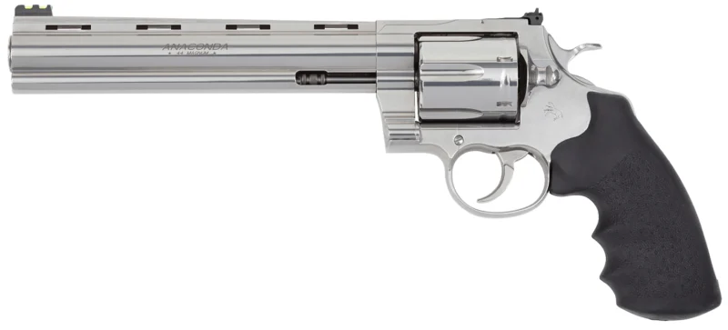 Colt Mfg ANACONDASP8RFT Anaconda Target 44 Mag 6rd 8″ Stainless Vent Rib Barrel, Stainless Steel Frame Black & Rubber Grip