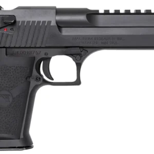 The Mark XIX Desert Eagle is a gas-operated, semi-automatic pistol with a trigger reach of 2.75″ and a sight radius of 8.5″. The construction of the Mark XIX Desert Eagle utilizes the latest CNC machine technology providing exacting specifications with tight tolerances creating a work of art in a precision firearm. The grip is anatomically formed and provides an ideal hand seating angle for two-handed shooting allowing for comfortable, rapid and accurate firing. A full picatinny style accessory rail on the barrel from the end of the chamber to right behind the front sight and standard ambidextrous safeties.