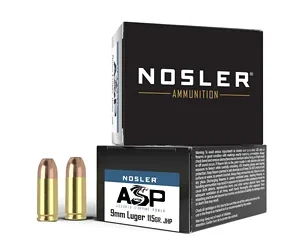 Nosler Assured Stopping Power (ASP) ammunition line combines match-grade accuracy with a reliable, effective, hollow-point bullet. Evolving from the Match Grade ammunition line, ASP ammunition is loaded with the same quality and attention to detail that Match Grade users have come to expect, with the addition of an expanding hollow-point bullet designed specifically for duty and defensive use. Loaded in Nosler headstamped brass, and utilizing quality components throughout, the ASP ammunition can be relied upon to perform in a wide variety of applications and ranges. Equally at home on duty or in a defensive role, Law Enforcement professionals and civilians alike can rest assured that ASP ammunition will perform when needed.