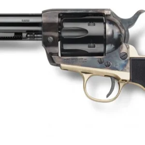9MM CALIBER – 4 3/4 BARREL LENGTH – CASE HARDENED FRAME – BRASS BACKSTRAP AND TRIGGERGUARD – BLACK 2-PIECE CHECKERED BLACK PLASTIC GRIP