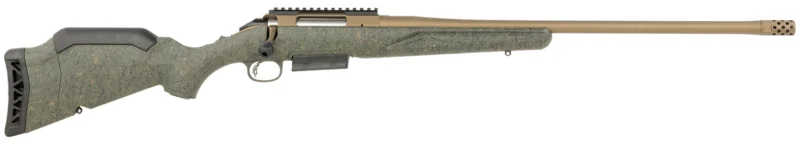 The Ruger American Predator Gen II bolt is CNC machined from stainless steel for smooth operation and the familiar three-lug design with a 70 degree throw provides ample scope clearance. Features a splatter finished stock that provides excellent grip without being too sharp or abrasive; installed spacer allows for length of pull to be adjusted; low comb improves sight alignment when using optics; medium contour, threaded barrel; factory-installed radial port muzzle brake; 3-position tang safety; Ruger Marksman Adjustable trigger and Picatinny rail. Includes one magazine and steel sling swivel studs.