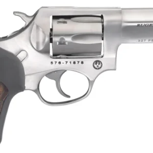 The Ruger SP101 revolver features a smaller Ruger cushioned grip system with no exposed metal at the back strap for shooter comfort. The patented triple locking cylinder mechanism securely locks the cylinder into the frame at the front, rear, and bottom. Its stainless steel frame has no weakening side plates. This model has a 3″ barrel and a rubber grip with a hardwood insert.