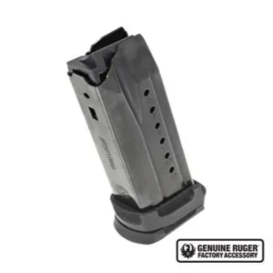 This black oxide alloy steel 15-round 9mm Luger Genuine Ruger Factory Magazine is compatible with the 10-round 9mm Luger Ruger Security-9 Compact Pistol when used with the included polymer magazine adapter. This Genuine Ruger Factory Accessory is made in the USA.
