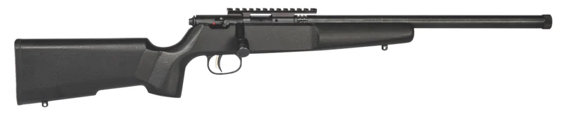 The industry’s safest micro rimfire has come of age. The Rascal Target is built for accuracy and adaptability, thanks to a precision hardwood stock, heavy 16.125″ barrel, one-piece Picatinny rail and threaded (1/2-28) muzzle. Like the original Rascal, the single-shot rifle cocks by lifting the bolt and unloads easily, without pulling the trigger. The design also builds superior shooting skills thanks to full-size rifle features, including Savages user-adjustable AccuTrigger system. The platform offers far better safety, functionality and accuracy than competing designs.