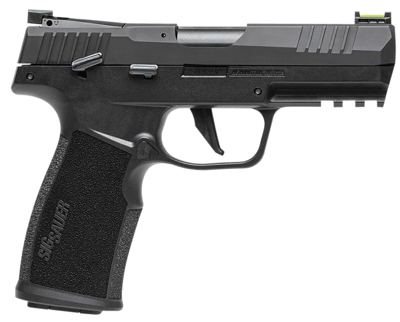 The P322 is loaded with features including ambidextrous controls, optic ready removable rear sight plate, interchangeable flat and curved triggers, suppressor ready with threaded barrel adapter and fiber optic front and adjustable rear sights. Includes two magazines, threaded barrel adapter, mag loader, flat and curved triggers.