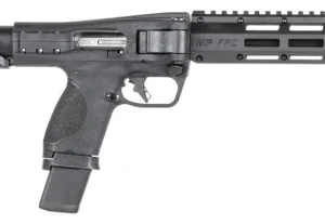 S&W’s M&P FPC features a slim and compact design that allows it to be stowed away and accessible when needed. Compatible with M&P double stack magazines. Features the ability to store additional magazines with in-stock storage; M-LOK handguard; Picatinny rail; charging handle doubles as retainer when folded; reversible magazine catch and 9/16″x24 threaded muzzle with thread protector. Includes carry bag w/additional storage and Velcro straps, one 15rd and two 20rd magazines.