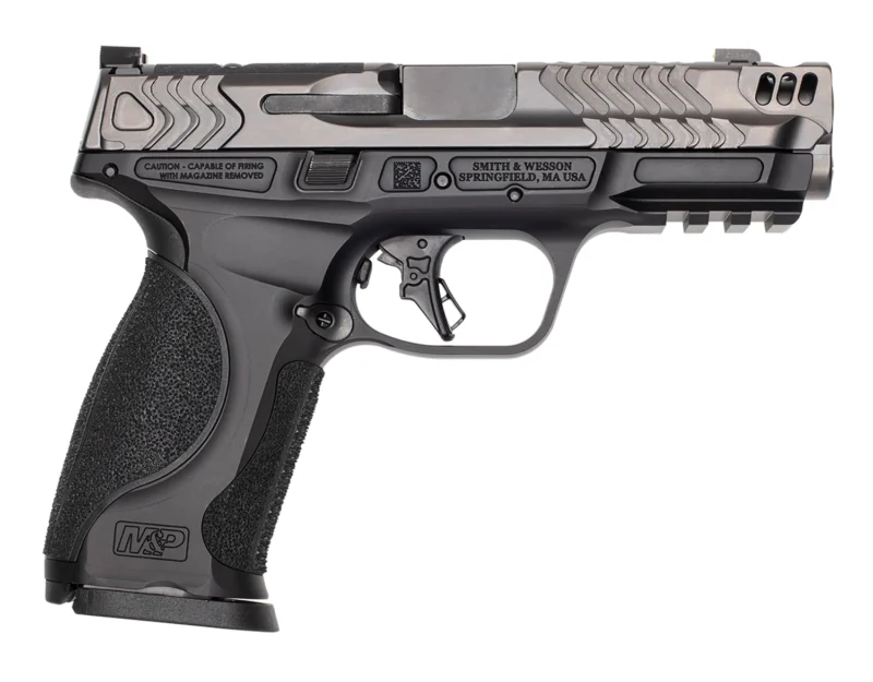 Continuing to pursue excellence and performance, the new Performance Center M&P9 M2.0 METAL Carry Comp pistol focuses on enhancing the shooting experience. Strategically designed to leverage the gasses escaping the end of the gun during firing, the Carry Comp helps reduce felt recoil meaning you can stay on target better, all in a compact design. Includes four interchangeable palmswell grip inserts and two magazines.