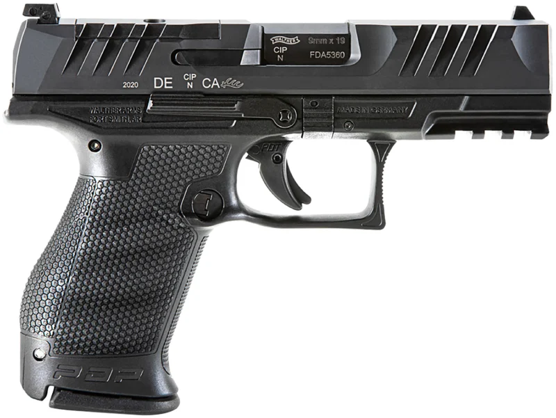 Walther Arms 2854686 PDP Compact Frame 9mm Luger 10+1 4″ Black Steel Barrel, Black Optic Ready/Serrated Steel Slide, Black Polymer Frame w/Picatinny Rail, Textured Polymer Grip, Ambidextrous