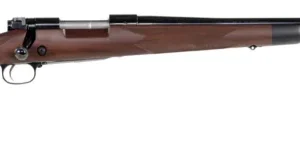 The Model 70 since 1936 it’s been the benchmark against which every other bolt-action rifle is measured. It still has the famous 3-position safety which is convenient to operate with the thumb of your firing hand, lifting the firing pin away from the sear. The forged steel receiver starts from a solid block of steel. The bottom profile of this receiver is flat to offer greater surface area for bedding. It is bedded with a two-part epoxy in two places, at the front and rear to keep things from shifting around inside the stock during firing. The classic Controlled Round Feed (CRF) bolt design is a massive claw extractor that smoothly slips onto and secures about one-quarter of the base of the cartridge. This exerts full control over the cartridge from the time it leaves the magazine, as it enters the chamber, gripping tightly until the cartridge is fully ejected. This design also allows an unfired cartridge to be extracted even if it is not yet fully chambered. The M.O.A. Trigger System is the most precise three-lever trigger system in the world and an improved fit and finish and enhanced accuracy to go along with its classic Pre-’64 controlled round feeding. A blade-type ejector gives you full control when ejecting a fired case. Its free-floating barrel is button rifled in a process that assures superior accuracy and durability. This Super Grade model features a satin fancy walnut stock.